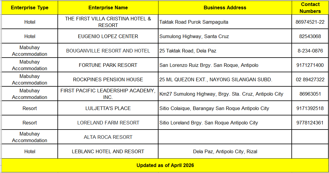 LIST OF ACCREDITED ACCOMMODATIONS, HOTEL & RESORTS